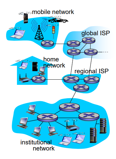 - Host들은 서로 패킷을 주고 받는다. 패킷은 출발지 host부터 목적지 host까지 라우터, 스위치, 통신링크 등을 거쳐서 간다.