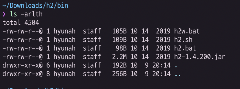 3. h2.sh라는 파일이 있는 것을 확인하고 권한 설정을 해준다. (mac만!)