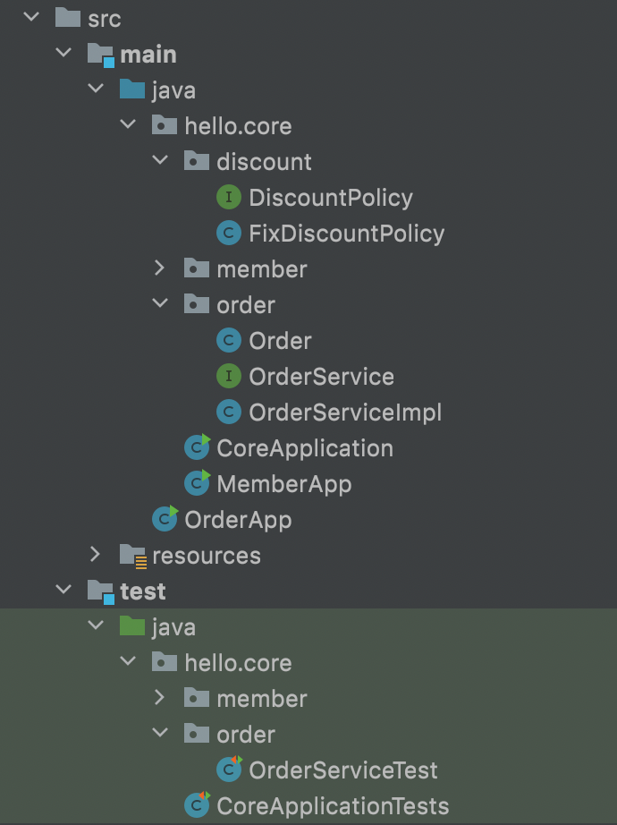 // main이 아닌 test폴더 아래에. test.java.hello.core.member.CoreApplicationTests.java
