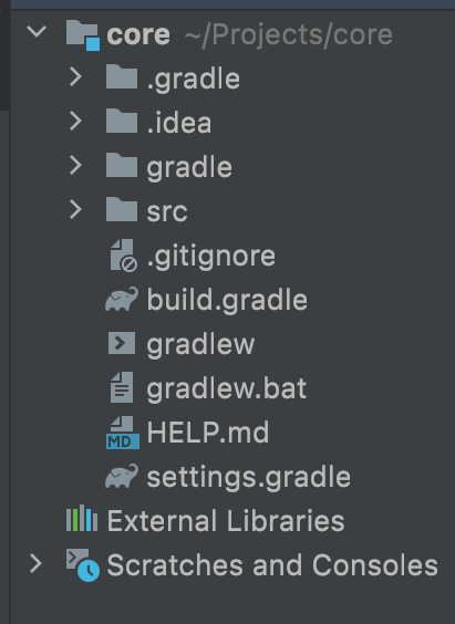 2. 생성된 zip 파일을 압축해제해서 intellij로 띄우면 다음과 같은 폴더 구조가 생성되어 있음