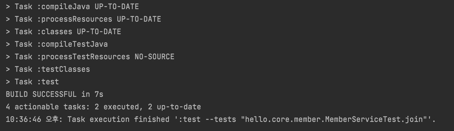 - member join을 통해 회원가입을 하고 findMember로 회원가입이 잘 되었는지 확인해줬다.
