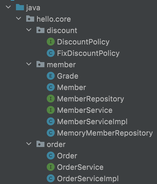 - Order에는 memberId, itemName, itemPrice, discountPrice가 들어간다.