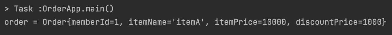 return new Order(memberId, itemName, itemPrice, discountPrice);