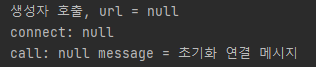 그 이후에 setUrl로 url을 넣어줬다. url은 처음에 생성자가 호출되었을 때는 없었기 때문에 null값으로 출력되었고 그 뒤에 url을 setting 해줬기 때문에 그제서야 설정이 된다.
