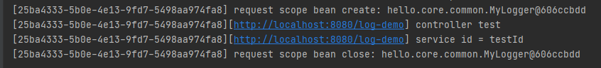 System.out.println("[" + uuid + "] request scope bean create: " + this);
