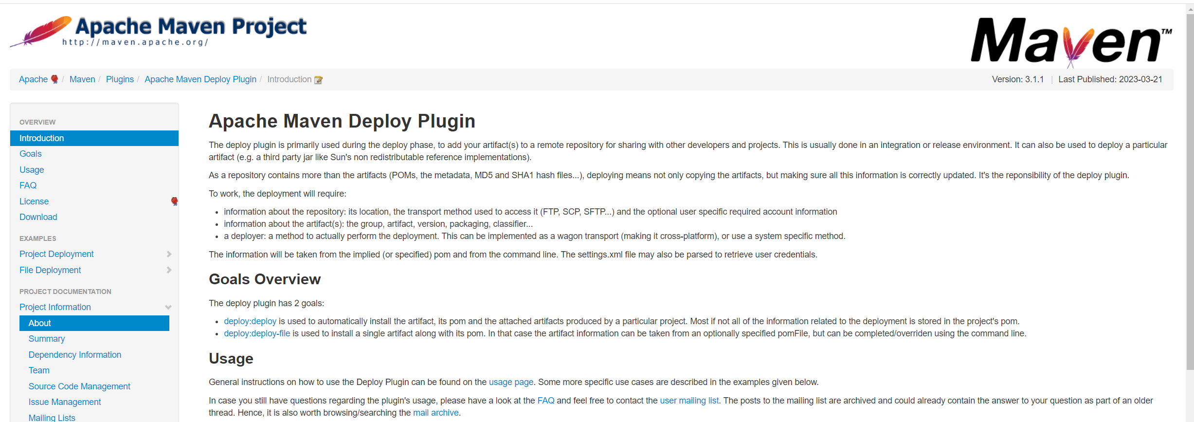 Maven의 다양한 plugin에 대해 알아보고 싶다면 다음 사이트에서 각 plugin을 눌러서 상세 내용과 goal을 확인할 수 있다.