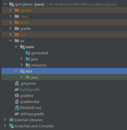Gradle은 Maven과는 다르게 아래와 같이 프로젝트 구조가 생성된다.