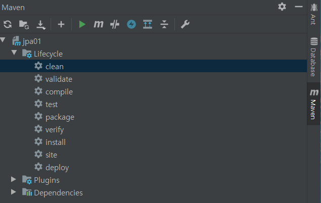 Intellij에서 우측의 maven을 클릭하면 clean, validate.. 등 다양한 버튼이 있다.